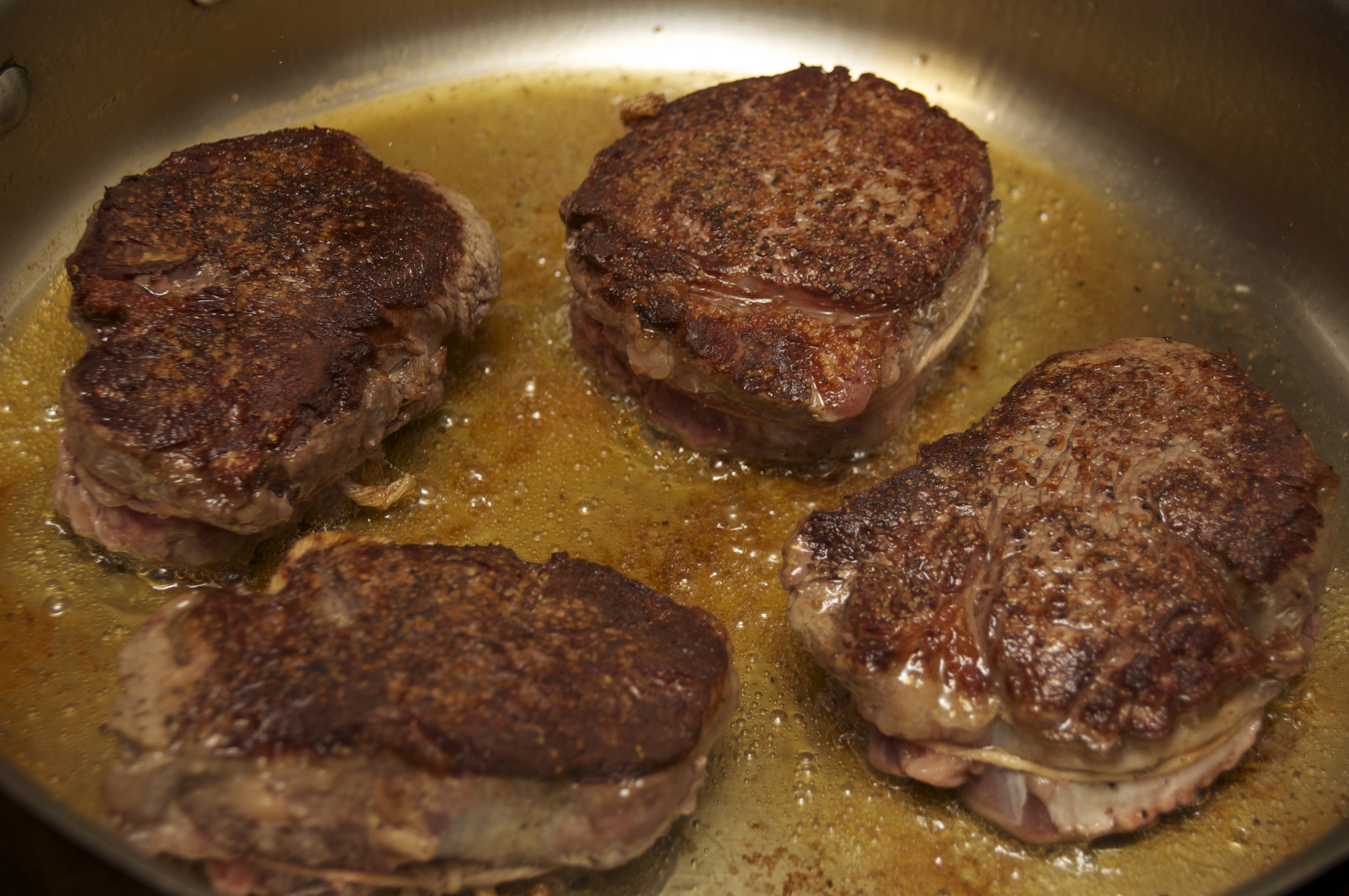 5.  Any fillet juice that has collected on the platter as steaks rested, add to the reduction.