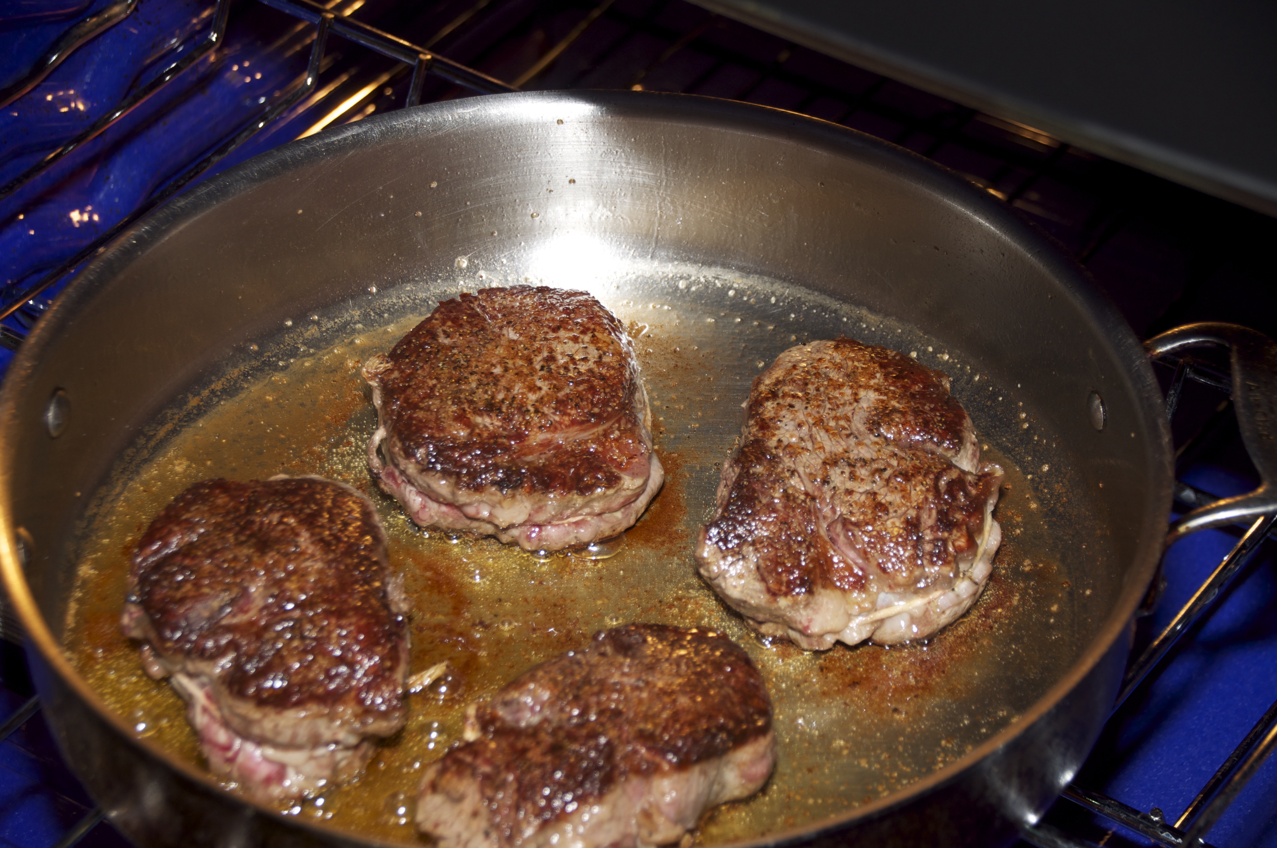 When the steaks are browned on both sides place into 400 degree oven.