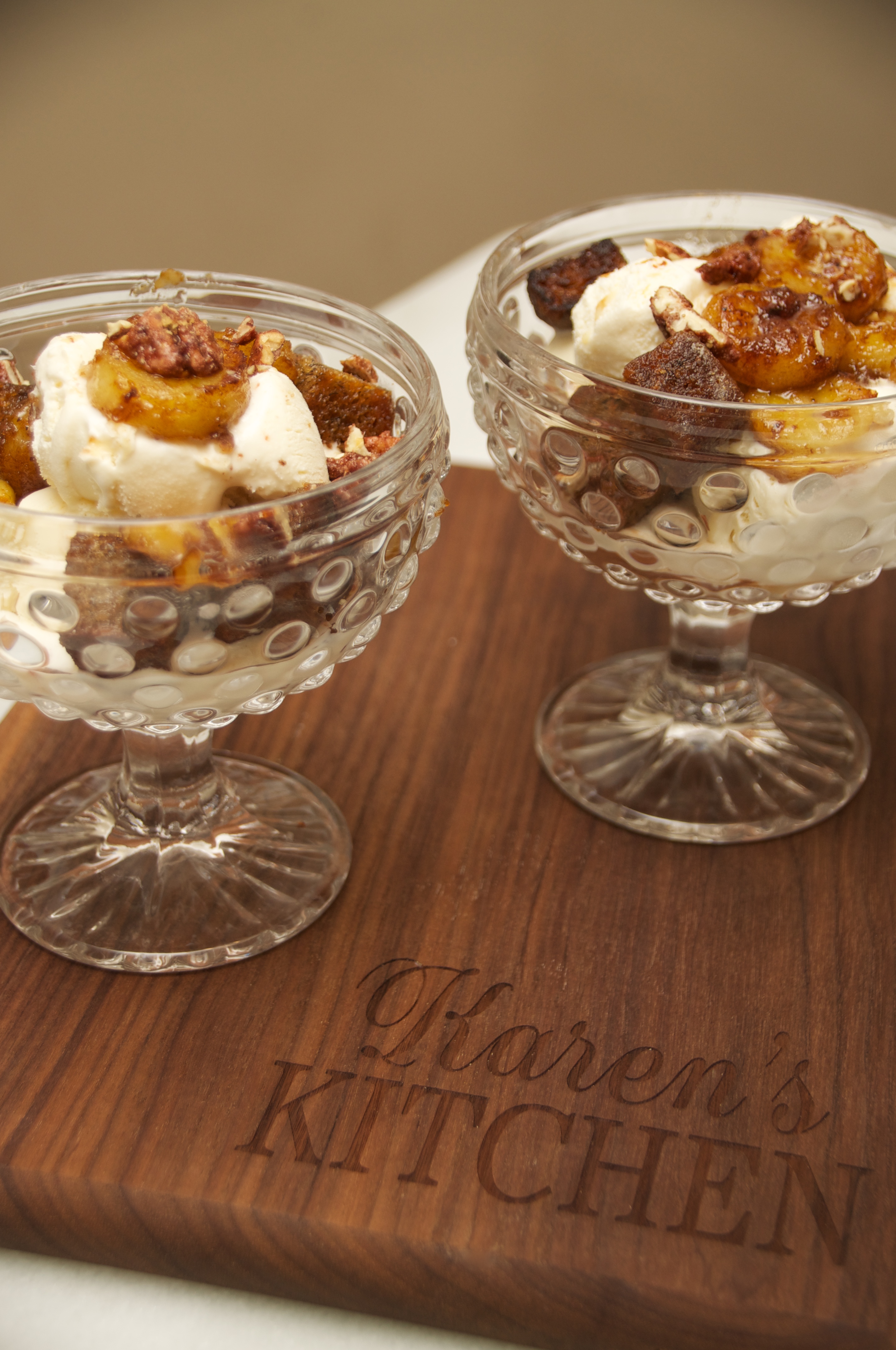 This week I picked up some banana bread and some candied pecans with a late night dessert in mind.  Once the kids went to sleep with their hands still sticky from eating kettle corn.  I whipped up a quick dessert for my partner in crime and I.