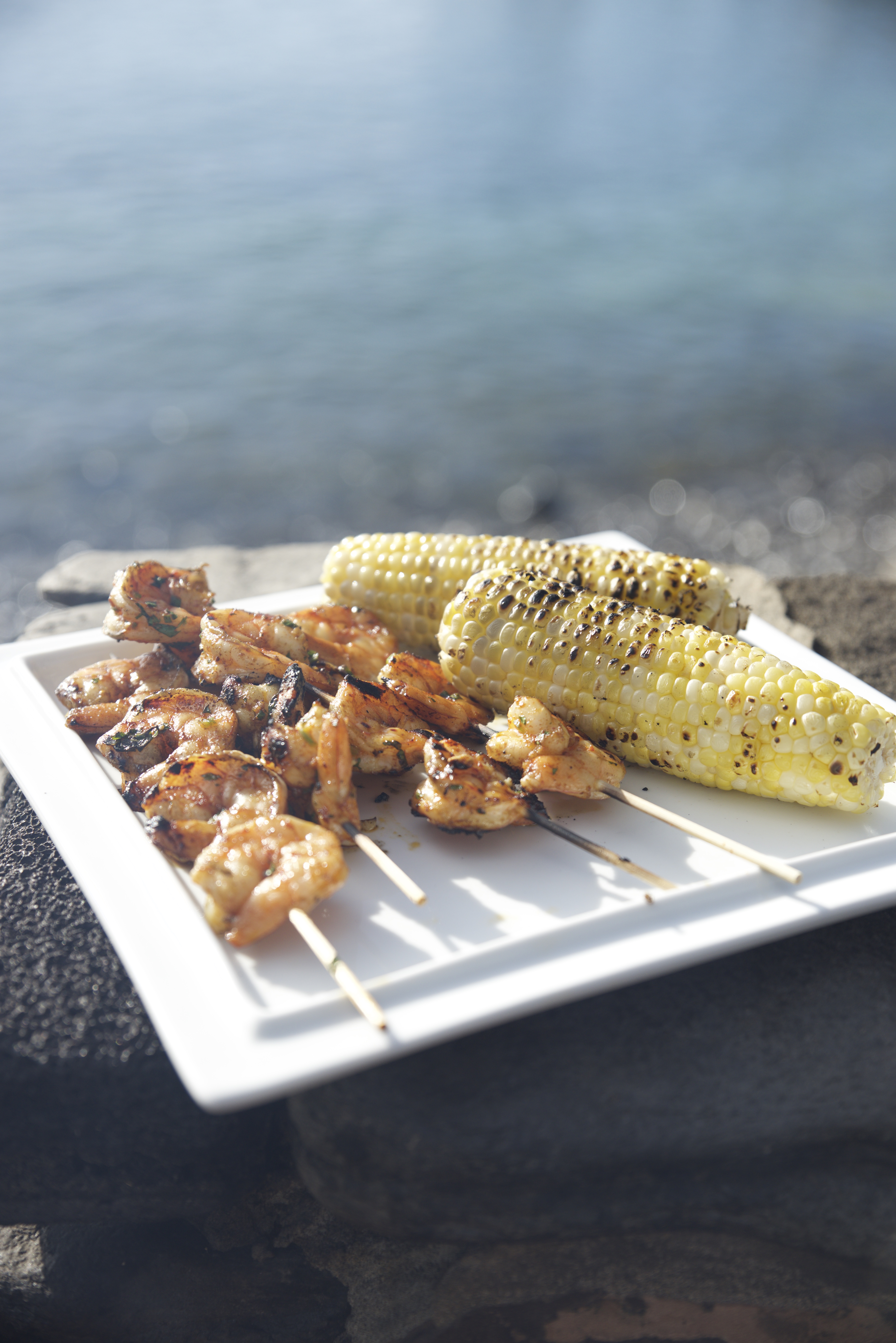 This summer my family vacationed in Maui. It was our second trip to the island, and we decided to stay in a condo rather than a hotel resort. It was definitely the right decision for a cook. I had an incredible modern kitchen with all the amenities a cook could ask for, and not to mention an ocean view from the kitchen. Everyday I couldn’t wait to wake up, make my coffee, and sit on the Lanai staring out toward the ocean waiting for the world to wake up. If I had a kitchen like this at home I would never leave. This particular evening we decided to stay in and make dinner. My husband offered to barbecue shrimp since the grill faced the ocean near the pool. The kids swam while we prepared dinner. It was a perfect evening with an absolutely fantastic dinner.